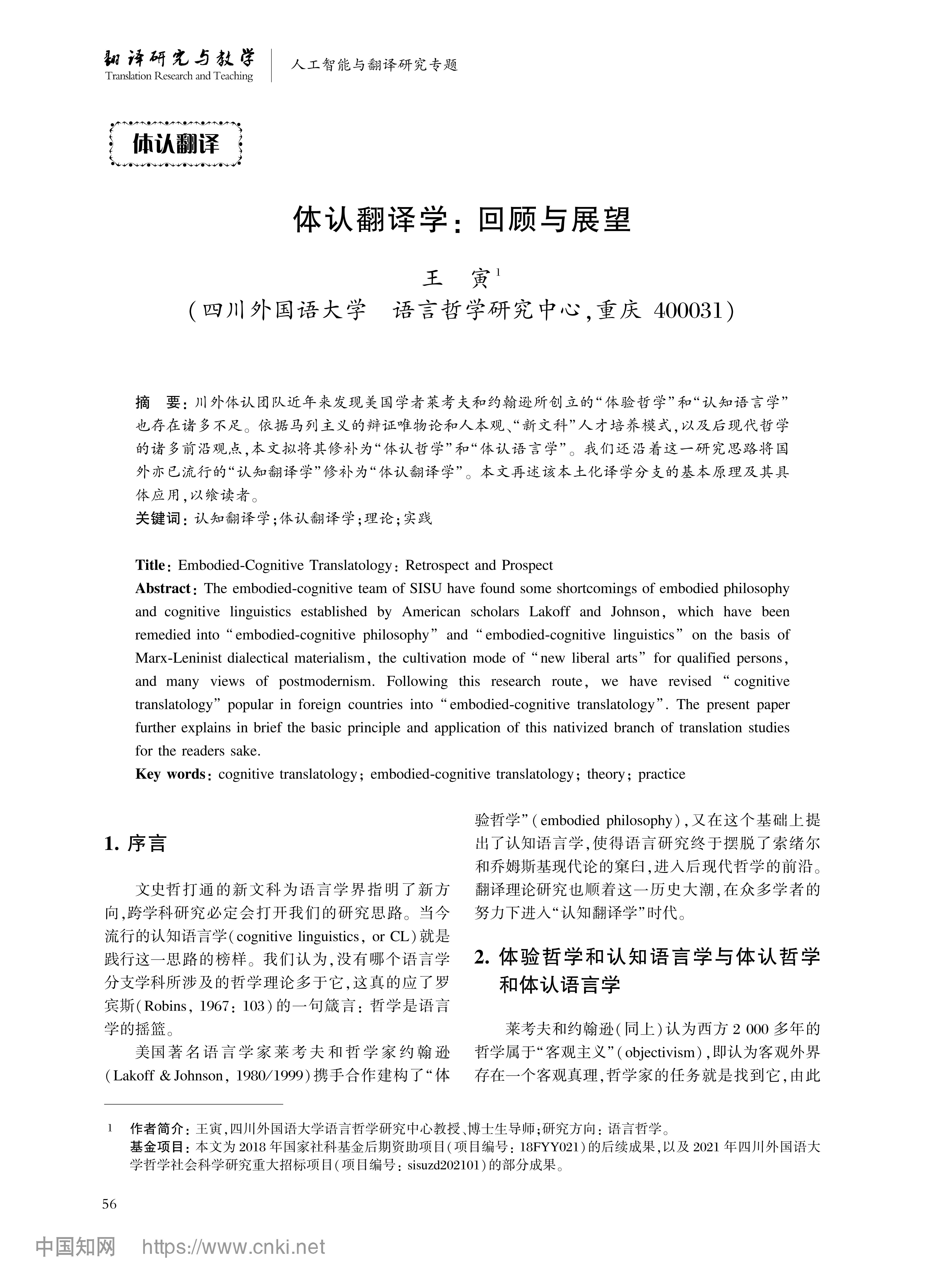 体认翻译学:回顾与展望 王寅